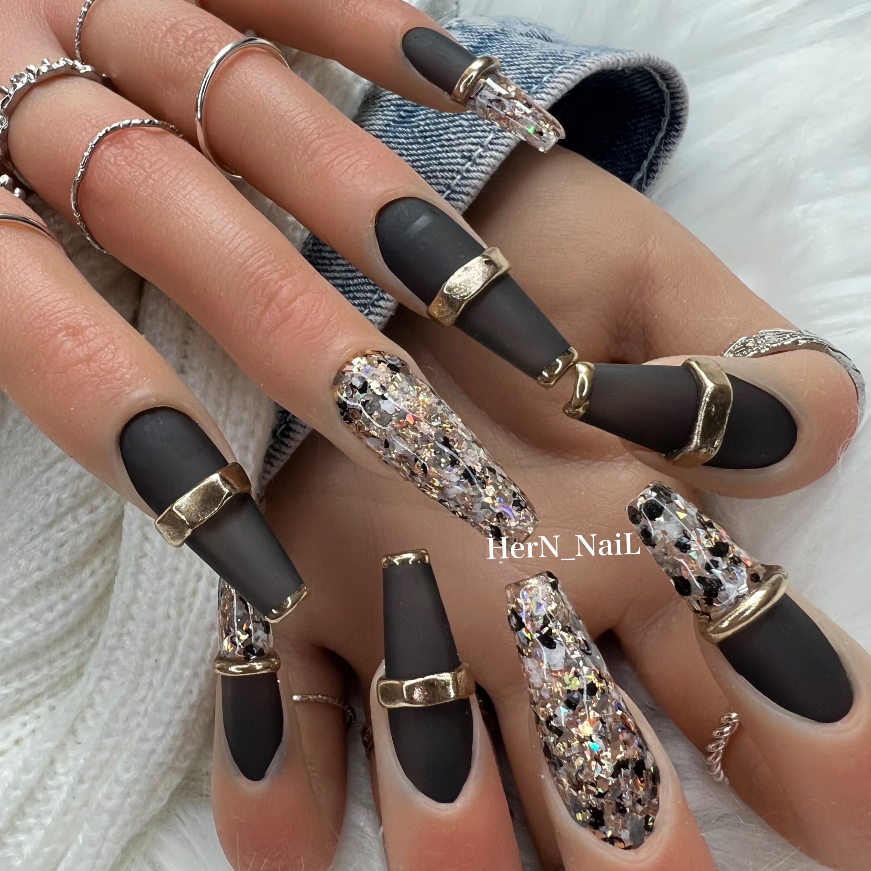 ブラックシェルフレーク埋め込みリングネイルチップ